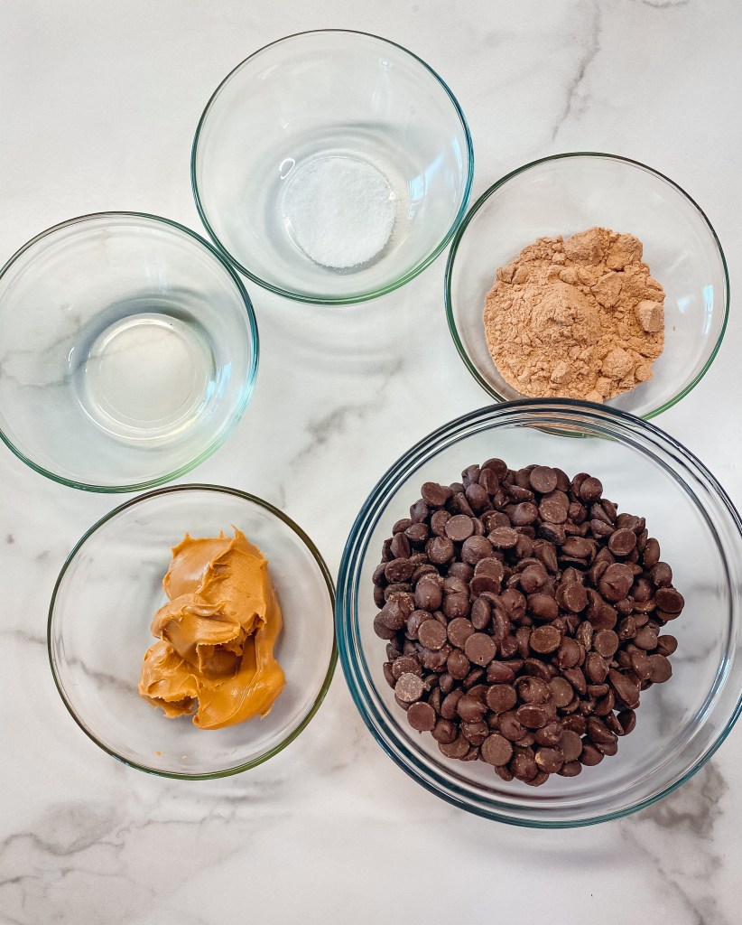 Ingredients: peanut butter, coconut oil, sea salt, dark chocolate, and chocolate protein powder.